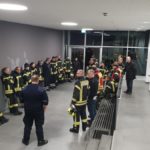 Die diesjährige Nachtübung der Schwerpunktfeuerwehr Gehrden fand am Matthias-Claudius-Gymnasium im Neubau der Schulaula statt. Das Szenario: Schüler der Theater-AG hatten für ein neues Stück geprobt. Auf der Bühne war dabei eine Kerze umgefallen, die dann Teile der Bühnendekoration in Brand setzte. Drei Schüler und der Lehrer konnten sich rechtzeitig ins Freie retten, vier weitere Schüler konnten das Gebäude nicht mehr verlassen. Der Löschzug der Feuerwehr Gehrden traf kurz nach der Alarmierung an der Einsatzstelle ein. Dichter Rauch zog aus den Fenstern der Aula. Das Foyer und der obere Treppenraum waren stark verraucht. Nach der Befragung des Lehrers und der Schüler sowie der Erkundung im Gebäude, konzentrierte sich der Einsatz auf die Menschenrettung. Von den beiden Löschfahrzeugen wurden Angriffstrupps mit Atemschutzgeräten zur Menschenrettung und Brandbekämpfung im Gebäude eingesetzt. Die Wasserversorgung wurde durch das Hydrantennetz sichergestellt. Die Einsatzleitung lies fiktiv die Alarmstufe erhöhen und somit weitere Einsatzkräfte der Feuerwehr und des Rettungsdienstes nachalarmieren. Die vier Personen wurden in dem unübersichtlichen Bereich der Aula und Bühne in realistischer Zeit gefunden und konnten der weiteren Versorgung zugeführt werden. Hilfreich war hierbei der Feuerwehrplan für das Schulgebäude. So konnten die vorgehenden Trupps von ihren Führungskräften eingewiesen werden. Nachdem die Menschenrettung abgeschlossen und das „Feuer“ gelöscht war, wurde der verbliebene Brandrauch mit einem Druckbelüfter aus dem Gebäude gedrückt. Hilfreich waren die Rauch-Wärme-Abzüge, die im Brandfall automatisch öffnen. Technisch fehlt jetzt noch die Durchschaltung der Brandmeldeanlage und die Aktualisierung der Feuerwehrlaufkarten um sich im Schadenfall in dem unübersichtlichen und weitläufigen Gebäudekomplex besser orientieren zu können. Die Übungsleitung war mit dem Ergebnis der abendlichen Übung zufrieden, die gesetzten Übungsziele wurden von den Einsatzkräften erreicht.