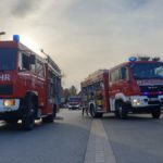 „Während besonderer Reparaturarbeiten am Betriebsgebäude eines Zimmereibetriebes im Gewerbegebiet am Ditterker Weg ist es zu einer Verpuffung mit nachfolgendem Brand gekommen. Durch die Druckwelle ist ein Gerüst umgestürzt und hat eine Person eingeklemmt. Ein weiterer Mitarbeiter ist auf einem Balkon im ersten Obergeschoss der brennenden Halle in Gefahr. Ob noch weitere Personen im Gebäude sind ist unklar“