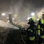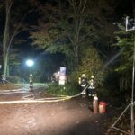 „Feuer in einer Scheune“ auf dem Gehrdener Berg, lautete die Einsatzmeldung für den Löschzug der Gehrdener Feuerwehr. „Rauch quillt aus dem Gebäude, in dem noch Personen vermisst werden“ bekamen die ersten Einsatzkräfte als Nachricht. Gegenüber des Berggasthauses hatte Ortsbrandmeister Peter-Albert Fricke mit Nebelmaschinen ein realistisches Szenario vorbereitet, als das Tanklöschfahrzeug vor Ort eintraf. Während sich Trupps mit Atemschutzgeräten für die Einsatz zur Menschenrettung ausrüsteten, begannen andere Feuerwehrleute bereits mit dem Aufbau einer Wasserversorgung von einem etwa 300 Meter entfernt liegenden Hydranten. Ein geländegängiges Einsatzfahrzeug fuhr über einen steilen Waldweg, um die benötigte tragbare Pumpe und das Schlauchmaterial in den Wald zu transportieren. Am „Einsatzort“ waren zwischenzeitlich mehrere Atemschutztrupps zur Menschenrettung im Einsatz, hatten schnell die drei vermissten „Personen“ gefunden und aus dem Gefahrenbereich gerettet. Anschließend bekämpften die Feuerwehrleute den „Brand“ mit Wasser aus mehreren Strahlrohren. Für die sichere Arbeit im stockdunklen Wald waren zwischenzeitlich zahlreiche leistungsstarke Beleuchtungssysteme aufgebaut und mit Strom versorgt worden. Nach gut einer Stunde war der nächtliche Übungseinsatz beendet. Gewonnene Erkenntnisse besprachen die Beteiligten unmittelbar danach und stellten zufrieden fest, dass 2021 überhaupt eine realistische „Nachtübung“ stattfinden konnte, bei der es nun für alle Beteiligten wertvolle Erkenntnisgewinne gab.
