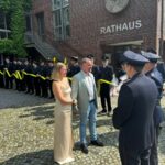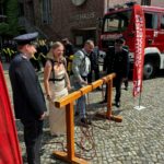 Nachdem sich Aurelie und Lutz im Gehrdener Standesamt das Ja-Wort gegeben hatten, empfingen Feuerwehrleute das frisch vermählte Paar vor dem Rathaus in der Gehrdener Innenstadt. Das Hochzeitspaar wurde durch ein Spalier von Mitgliedern der Gehrdener Feuerwehr auf den Rathausvorplatz geleitet. Hier war ein kleiner Feuerwehr-Hindernisparcours aufgebaut, den die Beiden mit viel Geschick gemeistert haben. Anschließend nahmen sie die vielen Glückwünsche der Hochzeitsgäste und ihrer Feuerwehrkameradinnen und -Kameraden entgegen. Lutz ist schon seit der Jugendfeuerwehr aktives Mitglied in der Schwerpunktfeuerwehr Gehrden und schon viele Jahre als Gerätewart im Ortskommando tätig. Am Abend trafen sich das Hochzeitspaar und die Feuerwehrleute mit vielen anderen Gästen zum traditionellen Polterabend im Feuerwehrhaus wieder.