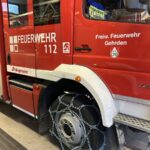 Am Freitag setzte ungewöhnlich heftiger Schneefall ein und führte in Verbindung mit kräftigem Ostwind zu winterlichen Straßenverhältnissen. Bereits am frühen Morgen rüsteten Einsatzkräfte das Löschfahrzeug (LF 20) sowie den Rüstwagen (RW) mit Schneeketten aus, um zusätzlich zum vorhandenen Allradantrieb eine bessere Traktion auf schneebedeckten Fahrbahnen zu erreichen. Zudem befreiten Feuerwehrleute die Zugänge und Hallentore am Feuerwehrhaus von Schneeverwehungen und unterstützen so die Maßnahmen der Räumfahrzeuge des Bauhofes. Probefahrten, auch mit den zuschaltbaren Schleuderketten der Drehleiter, ergaben, dass die speziell ausgerüsteten Einsatzfahrzeuge nun auch für die winterlichen Verkehrsbedingungen am Gehrdener Berg gut gerüstet sind.