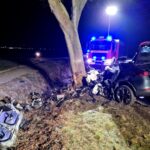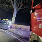 Auf der Fahrt von der Bundesstraße 65 in Richtung Gehrden prallte ein Mann mit seinem PKW frontal gegen einen Straßenbaum. Andere Verkehrsteilnehmer hielten als Ersthelfer am Unfallort an und alarmierten die Rettungskräfte. Feuerwehr und Rettungsdienst trafen kurz nach der Alarmierung auf der Kreisstraße 232 zwischen Benthe und Gehrden ein und stellten fest, dass der Fahrer in seinem stark zerstörten Fahrzeug eingeklemmt war. Es waren keine weiteren Fahrzeuge oder Personen an dem Unfall beteiligt. Bevor Feuerwehrleute den Eingeklemmten mit Hilfe hydraulischer Rettungsgeräte befreien konnten, musste das Hybrid-Fahrzeug zunächst gesichert werden. Hierbei galt der teils zerstörten Elektro-Hochvolttechnik sowie der energiegeladenen Traktionsbatterie besondere Aufmerksamkeit. Der Notarzt stellte noch vor Ort den Tod des Unfallopfers fest. Für die polizeilichen Ermittlungen zur Unfallursache leuchtete die Feuerwehr den Unfallort mit Hilfe mehrerer Scheinwerfer hell aus.