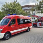 Fahrzeuge: Einsatzleitwagen (ELW 1), Löschfahrzeug 20 (LF20), Hilfeleistungslöschfahrzeug (HLF 16/12), Rüstwagen (RW), Drehleiter mit Korb (DLK)