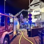 Anrufer meldeten über den Notruf weithin sichtbaren Feuerschein auf einem Balkon eines Mehrfamilienhauses. Zudem waren laute Knallgeräusche wahrnehmbar. Kurz danach eintreffende Einsatzkräfte gingen sofort über eine tragbare Leiter auf den Balkon im ersten Obergeschoss vor und bekämpften den Brand mit Wasser aus dem Löschfahrzeug. Parallel bereitete Feuerwehrtrupps einen Löscheinsatz im Treppenraum vor und warnten die Hausbewohner in anderen Wohnungen. Schnell hatten Feuerwehrleute das Feuer gelöscht und eine Brandausbreitung in die Wohnung verhindert. Alle anwesenden Personen hatten zwischenzeitlich das Haus verlassen und blieben unverletzt. In den an den Balkon angrenzenden Wohnräumen waren keine Personen. Einen Balkon oberhalb der Brandstelle kontrollierten die Einsatzkräfte mit Hilfe einer Wärmebildkamera aus dem Korb einer Drehleiter, um eine kritische Erwärmung auszuschließen. Eingedrungenen Rauch bliesen Feuerwehrleute mit Hilfe eines speziellen Druckbelüftungsgerätes aus dem Haus. Die Knallgeräusche wurden vermutlich durch Teile der Balkonverkleidung verursacht, die bei dem Brand zerborsten sind und dabei teilweise bis auf die andere Straßenseite geschleudert wurden. Alle Bewohner konnten nach dem Feuerwehreinsatz in ihre unbeschädigten Wohnungen zurückkehren. Zur Brandursache hat die Polizei noch vor Ort Ermittlungen aufgenommen.