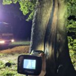 Einige Stunden nachdem eine große hohle Eiche am Gehrdener Berg brannte, kontrollierten Feuerwehrleute die Brandstelle, um ein erneutes Aufflammen durch versteckte Glutnester auszuschließen. Die Kontrolle mit Hilfe einer speziellen Wärmebildkamera bestätigte, dass die Löschmaßnahmen erfolgreich waren.