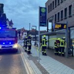 An einer zentralen Bushaltestelle bemerkten wartende Fahrgäste zwei qualmende Mülleimer. Die alarmierte Feuerwehr löschte mit Wasser aus dem Löschfahrzeug.