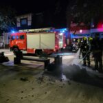 Anwohner bemerkten mehrere brennende Müllsäcke, die nach einer Veranstaltung in der Fußgängerzone lagen. Noch während die alarmierte Feuerwehr auf der Anfahrt war, löschten sie mit einem Handfeuerlöscher und verhinderten so eine Brandausbreitung. Feuerwehrleute löschen die restliche Glut mit Wasser aus dem Tanklöschfahrzeug und deckten den Haufen abschließend mit einem Schaumteppich ab.