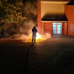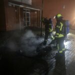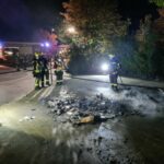 Passanten bemerkten Feuerschein auf dem Vorplatz der Grundschule und alarmierten die Feuerwehr. Als kurz danach Einsatzkräfte vor Ort eintrafen, war der fahrbare Müllcontainer bereits weitgehend geschmolzen. Während ein mit Atemschutzgeräten ausgerüsteter Trupp mit Wasser löschte, kontrollierten Feuerwehrleute auch den unmittelbar hinter der Brandstelle liegenden Eingangsbereich der Schule. Das Feuer war schnell gelöscht. Das Schulgebäude blieb unbeschädigt. Zur Brandursache hat die Polizei vor Ort Ermittlungen aufgenommen.