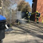 Passanten bemerkten aufsteigenden Rauch aus einem fahrbaren Container für Kuststoffabfälle, der vor einem Hotel stand. Nachdem sie die Feuerwehr alarmiert hatten, unternahm ein Mitarbeiter eines nahe gelegenen Supermarktes erste Löschversuche mit einem Eimer voll Wasser. Ein Feuerwehrtrupp löschte die qualemden Reste mit Wasser aus dem Löschfahrzeug ab.