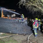 Mehrere Anrufer meldeten über Notruf einen Feuerschein aus der Gartenkolonie Schüttewiese am Stadtweg. Als kurz nach der Alarmierung der Löschzug der Schwerpunktfeuerwehr vor Ort eintraf war heller Feuerschein im Bereich hinter der Tankstelle sichtbar. Unmittelbar neben dem brennenden Gartenhaus standen mehrere kleine Lauben auf angrenzenden Parzellen. Um zunächst den Brandüberschlag auf die Nachbarbauten zu verhindern, mussten Einsatzkräfte eine etwa 200 Meter lange Schlauchleitung vom Tanklöschfahrzeug aufbauen. Noch während erste Löschtrupps über Zäune und durch Nachbargärten zu der massiv gebauten Laube vordrangen, ließ der Einsatzleiter die Alarmstufe erhöhen. Von zwei Seiten löschten Atemschutztrupps mit Wasser aus mehreren Rohren. Zeitgleich bauten weitere Feuerwehrleute eine Wasserversorgung mit langen Schlauchleitungen von einem Hydranten auf und gingen durch einem weiteren Zugang zur Brandbekämpfung in die Laubenkolonie vor. Schon nach kurzer Zeit zeigten die gezielten Löschmaßnahmen Wirkung und hatten die Brandausbreitung verhindert. Nach etwa einer Stunde war das offene Feuer aus sowie eine zuvor mit Flammen beaufschlagte Gasflasche gekühlt und aus der Laube geborgen. Für die umfangreichen Nachlöscharbeiten musste die Einsatzstelle mit Hilfe lichtstarker Scheinwerfer ausgeleuchtet werden. Einsatzkräfte entfernten die Dacheindeckung, um darunter glimmende Dachbalken ablöschen zu können. Erst nach etwa drei Stunden waren alle Einsatzmaßnahmen beendet. Während des Einsatzes musste der Stadtweg zwischen Barsinghäuser Straße und dem Kreisverkehr an der Umgehungsstraße vollständig für den Verkehr gesperrt werden.