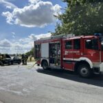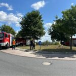 Während der Fahrt bemerkte ein Paar zunächst Brandgeruch und kurz danach beißenden Rauch, der aus dem Armaturenbrett ihres Mercedes quoll. Der Fahrer musste den Wagen unmittelbar im Kreisverkehr stoppen und brachte sich mit seiner Frau unverletzt in Sicherheit. Noch bevor die alarmierte Feuerwehr vor Ort eintraf, hatte ein Ersthelfer mit seinem Feuerlöscher das Feuer im Innenraum des PKW weitgehend ablöschen können. Einsatzkräfte kontrollierten die Brandstelle im Bereich einer elektrischen Schalttafel mit Hilfe einer Wärmebildkamera, klemmten die Fahrzeugbatterie ab und löschten Restglut ab. Anschließend schoben Feuerwehrleute das fahruntüchtige Kraftfahrzeug an den Fahrbahnrand. Während des Feuerwehreinsatzes kam es kurzfristig zu Verkehrsbehinderungen und Rückstaus auf allen vier einmündenden Fahrbahnen.
