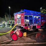 Beim Eintreffen der Feuerwehr war schon aus einiger Entfernung Flammenschein sichtbar. Die Einsatzkräfte verschafften sich Zugang zu dem verschlossenen Betriebsgelände und löschten den Brand mit Wasser und Schaum. Da der Sperrmüll auf der Freifläche zuvor großflächig verteilt worden war, entstand kein weiterer Schaden.