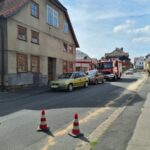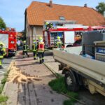 Einer Passantin fiel in der Neuen Straße ein LKW auf, von dessen Ladefläche eine Flüssgkeit tropfte und auf den Gehweg lief. Sie alarmierte daraufhin die Feuerwehr, die kurz nach dem Notruf eintraf. Die Einsatzkräfte lokalisierten auf der Ladefläche des Baustellenfahrzeugs einen Kunststoffkanister aus dem Motoröl auslief. Feuerwehrleute sicherten den Behälter und streuten die Ladefläche sowie die betroffenen Verkehrsflächen mit Bindemittel ab. Kontaminiertes Erdreich und Grünpflanzen wurden von der Parkplatzfläche entfernt. Nachdem kein Öl mehr vom LKW tropfte, wurde das Fahrzeug in Absprache mit der Polizei vom Besitzer zum firmeneigenen Betriebshof gebracht. Mitarbeiter der Unteren Wasserbehörde begutachteten die Schadenstelle, der städtische Bauhof wurde ebenfalls über das Ereignis für weiterführende Maßnahmen in Kenntnis gesetzt.