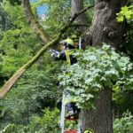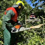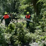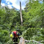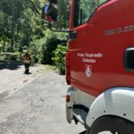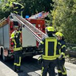 Bei kräftigen Schauern mit stürmischen Windböen brach eine große Buche am Rand des Gehrdener Berges ab. Die stark belaubte Krone stürzte auf das Ende der Bismarkstraße und versperrte dort den Übergang in bzw. aus dem Wald. Zudem lagen große Äste auf dem Grundstück eines Einfamilienhauses und ragten darüber hinaus bis in den öffentlichen Fußweg. Anwohner verständigten die Feuerwehr, da auch unklar war, ob weitere Baumteile abstürzen und Fußgänger gefährden könnten. Feuerwehrleute zerteilten die auf den öffentlichen Verkehrsflächen liegenden Äste mit einer Motorkettensäge und räumten diese an die Seiten. Zudem erkannten die Einsatzkräfte einige große Äste, die sich in einem anderen Baum verfangen hatten und abzustürzen drohten. Von einer Leiter konnte ein Feuerwehrmann diese zerteilen und anschließend zu Boden bringen. Danach waren alle akuten Gefahrenstellen beseitigt und der Feuerwehreinsatz beendet.