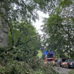 Unvermittelt brach ein großer Ast von einem mächtigen Baum ab. Dieser stürzte aus etwa 10 Metern Höhe auf den Fußweg und die Straße. Obwohl sich am Abend zahlreiche Personen in dem Straßenabschnitt zu Fuß bewegten und parkende Autos in der Nähe standen, gab es keine Verletzten und keine Sachschäden. Feuerwehrleute zersägten die am Boden liegenden Baumteile. Danach beseitigten die Einsatzkräfte die Abschnitte und reinigten die Verkehrswege.