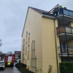 Ein loser Ziegel drohte vom Dach eines Mehrfamilienhauses auf den Gehweg oder auf einen abgestelltes Auto zu fallen. Einsatzkräfte konnten diesem mit Hilfe eines speziellen Hakens von einem Balkon aus erreichen und so von der Dachfläche holen. Hiernach war die Gefahrenstelle beseitigt.