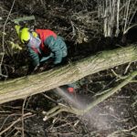 Ein rund 20m hoher Baum war durch eine starke Sturmböe erfasst worden, auf die Straße gestürzt und blockierte beide Fahrspuren sowie den Fußweg. Einsatzkträfte der alarmierten Feuerwehr Gehrden sicherten die Einsatzstelle in dem dunklen Waldstück und beseitigten den Baum mit Kettensägen. Die Fahrbahn wurde mit Besen gereinigt und anschließend für den Verkehr wieder freigegeben.