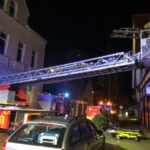 Die Feuerwehr wurde in der Nacht vom Rettungsdienst zur Unterstützung nachgefordert. Eine Person musste aufgrund des Krankeheitsbildes speziell gelagert aus ihrer Wohnung im Dachgeschoss des Wohnhauses zum Rettungswagen transportiert werden. Mit Hilfe eines Rettungstuches und einer Schleifkorbtrage brachten die Einsatzkräfte den Patienten zunächst ins erste Obergeschoss. Von hier wurde die Person mittels der Drehleiter durch ein Fenster aus dem Haus gebracht und anschließend zur weiteren Versorgung durch den Rettungsdienst in eine Klinik gefahren.