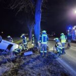 Auf der Bundesstraße 65 prallte ein PKW während der Fahrt gegen einen Straßenbaum und überschlug sich anschließend. Der verletzte Fahrer konnte das auf dem Dach liegende Fahrzeug selber verlassen. Während der Rettungsdienst das Unfallopfer medizinisch versorgte, sicherten Feuerwehrleute die Unfallstelle und leuchtete diese taghell aus. Einsatzkräfte trennten die Stromversorgung zur Fahrzeugbatterie und streuten ausgelaufene Betriebsstoffe abschließend mit speziellem Bindemittel ab.
