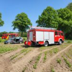 Auf der Kreisstraße zwischen Lenthe und Harenberg war eine Frau mit ihrem PKW seitlich gegen einen Baum geprallt. Der VW Touran wurde an der Fahrerseite schwer beschädigt und schleuderte auf ein Feld. Als die alarmierten Einsatzkräfte der Feuerwehr und des Rettungsdienstes eintrafen, war die verletzte Fahrerin ansprechbar, konnte jedoch aufgrund verkeilter Türen nicht aus dem Fahrzeug gelangen. Während der Rettungsdienst die Verletzte zunächst medizinisch erstversorgte, bereiteten Feuerwehrleute die technische Rettung vor und stellten den Brandschutz sicher. Anschließend öffneten sie die beiden Türen auf der Fahrerseite mit Hilfe hydraulischer Rettungsgeräte. Schnell konnte das Unfallopfer aus dem Fahrzeug gerettet und in einen Rettungswagen gebracht werden. Anschließend klemmte die Feuerwehr die Fahrzeugbatterie ab, um mögliche Zündquellen durch elektrischen Strom an dem beschädigten Kompaktvan auszuschließen.