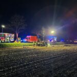 Auf der Fahrt von Benthe nach Gehrden prallte ein 33-jähriger Mann mit seinem PKW gegen einen Straßenbaum. Das schwer beschädigte Fahrzeug schleuderte auf ein Feld und überschlug sich. Der Fahrer wurde hierbei in seinem auf der Seite liegenden Mitsubishi eingeklemmt. Feuerwehrleute sicherten das instabil liegende Unfallfahrzeug zunächst mit speziellen Stützen ab, während der Rettungsdienst den Schwerverletzten versorgte. Mit Hilfe hydraulischer Rettungsgeräte befreiten die Einsatzkräfte das Unfallopfer. Leider verstarb der Mann noch am Unfallort. Um zwischenzeitlich eingetroffenen Angehörige kümmerte sich eine hinzugerufene Notfallseelsorgerin. Die Feuerwehr streute ausgelaufene Betriebsstoffe mit Bindemittel ab und leuchtete den Unfallort für die Ermittlungen der Polizei aus.