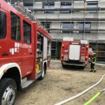 Auf der Baustelle für eine neue Grundschule stellten Bauarbeiter am Morgen einen Wasserschaden fest. Die unkontrolliert im Gebäude ausgebreiteten Wassermengen waren so groß, dass die verfügbaren technischen Geräte auf der Baustelle für die Beseitigung nicht ausreichten. Die vom Bauleiter alarmierte Feuerwehr setzte mehrere Tauch- und Schmutzwasserpumpen sowie Wassersauger ein. In einem etwa vierstündigen Einsatz pumpten Einsatzkräfte etwa 180.000 Liter Wasser aus dem Gebäude und leiteten dieses in die Kanalisation ein.